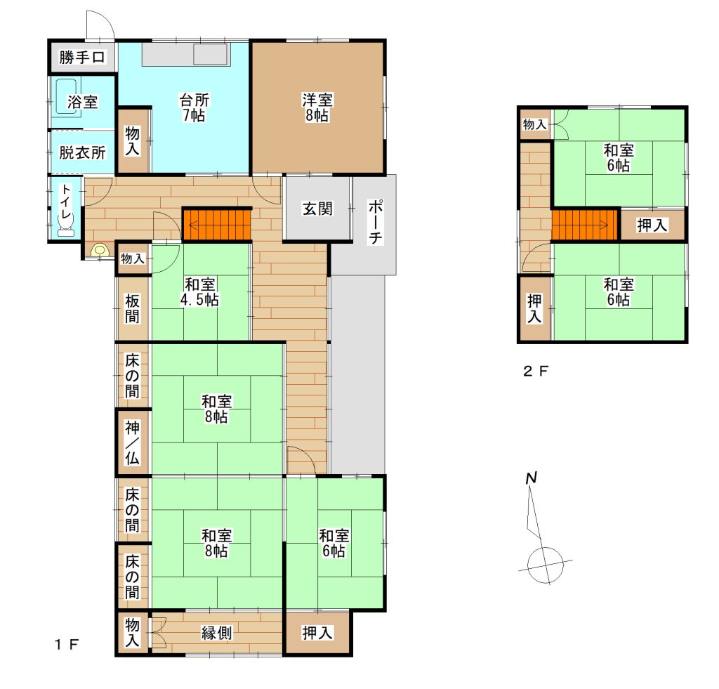 ※上記記載建物面積は登記簿記載面積。1階実測面積:119.10m2(未登記部分有) ※別棟、未登記附属家有(19.83m2) ※表題登記変更は売主では行いません。 |